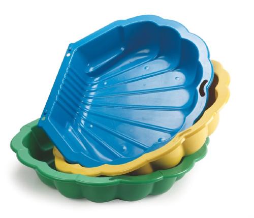 Bellissima sabbiera a forma di conchiglia in plastica, con trattamento anti-uv per resistere ai raggi del sole.