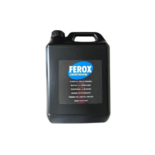 Ferox è un trattamento per la ruggine e la protezione di superfici ferrose, applicabile su superfici arrugginite, nuove, verniciate o non. Ha un beccuccio dosatore e può essere utilizzato in ambienti chiusi grazie alla sua bassissima tossicità. A base di resine sintetiche in acqua, senza solventi, trasforma la ruggine in un complesso stabile di colore nero, che diventa resistente agli agenti atmosferici e impermeabile all’umidità. È anche efficace su superfici verniciate o non arrugginite, formando uno strato trasparente. È sovraverniciabile con qualsiasi tipo di vernice, sia a base di acqua che di solvente.
