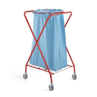 Carrello portasacco a X in acciaio verniciato, capacità 120 litri, robusto e resistente alla corrosione. Ergonomico, consente l’estrazione del sacco senza sollevarlo, riducendo l’affaticamento. Dotato di ruote da 80 mm per una facile manovrabilità ed elastico fermasacco; sacco non incluso.