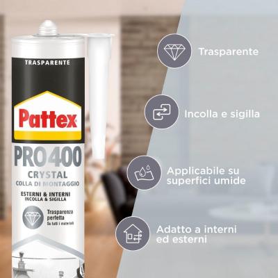 Pattex PRO 400 è compatibile con più materiali tra cui ceramica, cemento, cartone, cartongesso, compensato,