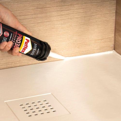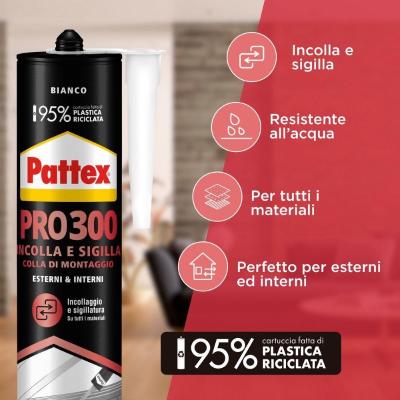Pattex PRO 300 è adatto all’incollaggio e alla sigillatura tra più materiali tra cui mattoni, ceramica,