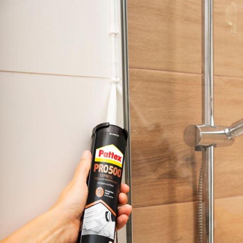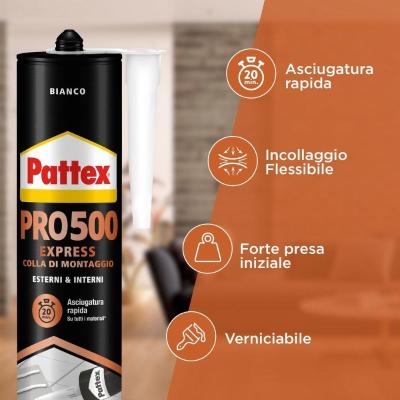 Pattex PRO 500 è adatto all’incollaggio di materiali come legno, compensato, cartongesso, ceramica,