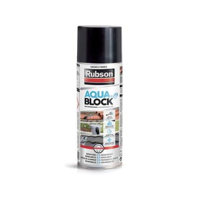 Rubson Aquablock Spray Impermeabilizzante è un rivestimento protettivo a base di gomma che può essere utilizzato per riparare perdite e crepe. Agisce come un sigillante impermeabile e flessibile che previene gli effetti dell'umidità e della corrosione.