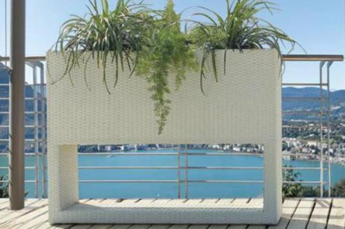 BIZZOTTO Fioriera con struttura in acciaio verniciato a polvere epossidica e intreccio in polyrattan. Vasca interna in zinco. Disponibile nei colori: bianco.