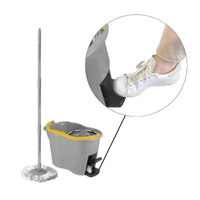 Sistema lavapavimenti con centrifuga a pedale. Completo di secchio, strizzatore in acciaio inox, manico e fiocco microfibra sfilabile e lavabile. Lava, spolvera e asciuga velocemente e in profondità. Strizza il fiocco senza fatica, premendo semplicemente il pedale con il piede. Ideale per ogni pavimento.