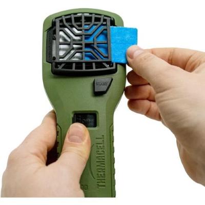 Il portatile Thermacell e gli altri apparecchi, sono alimentati da una cartuccia di gas butano che fornisce calore (senza fili o batterie) per attivare le piastrine repellenti.