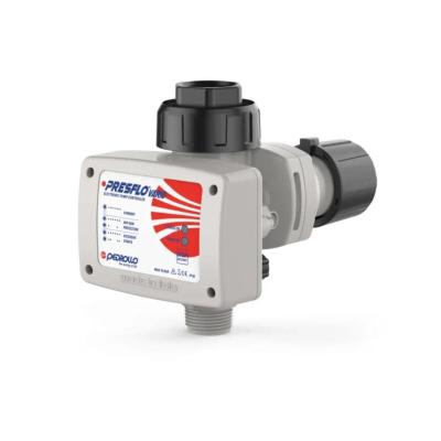 Dispositivo elettronico di comando e protezione per elettropompe domestiche monofase con potenza fino a 2 HP, per l’approvvigionamento idrico e l’aumento di pressione dell’acqua in impianti domestici e per piccole irrigazioni. PRESFLO VARIO è composto da un sensore di pressione e da un sensore di flusso, collegati ad un sistema elettronico, che avviano l’elettropompa quando, all’apertura di un rubinetto, la pressione dell’impianto scende sotto la pressione di ripartenza e l’arrestano quando la portata si azzera o scende al di sotto di 2 l/min. PRESFLO VARIO è dotato di una manopola per una rapida ed intuitiva regolazione della pressione di ripartenza da un minimo di 0.8 bar ad un massimo di 2.4bar.