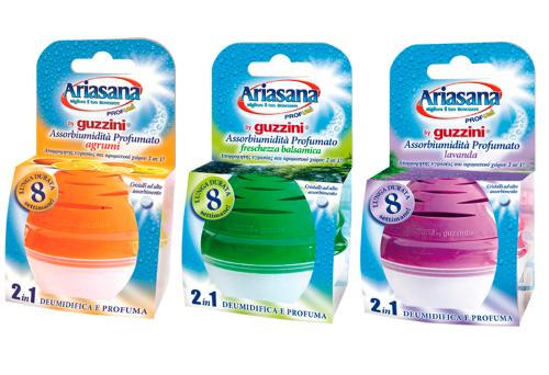 Esclusivo apparecchio 2 in 1 ideale per deumidificare e profumare gli ambienti più piccoli della casa come il bagno, la cucina, la scarpiera, gli armadietti o il ripostiglio. Coniuga lo stile Guzzini con l’innovazione e la ricerca Henkel - Ariasana. L’inconfondibile design firmato "Guzzini" rende Profumì un oggetto d’arredo oltre che un assorbiumidità in grado di migliorare la qualità dell’aria e di profumare gli ambienti. Profumì è un usa e getta capace di catturare l’eccesso di umidità nell’aria attraverso i suoi cristalli ad alto assorbimento e, grazie alla tecnologia con fragranze incapsulate, garantisce un profumo sempre fresco per 8 settimane. Disponibile in tre varianti di colore e di profumazione: Lavanda, Agrumi e Freschezza Balsamica.