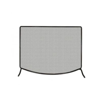 Parascintille in ferro battuto a pannello sin golo curvo sorretto da piedini.
