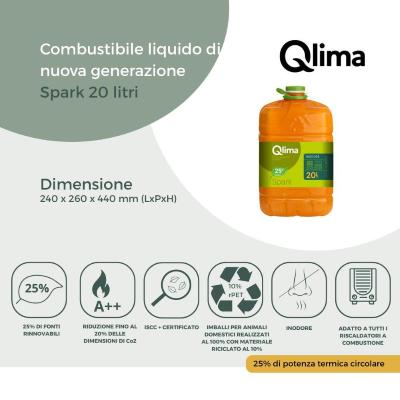 Stai cercando un combustibile con un occhio al futuro? Scopri Qlima Spark: esattamente quello a cui siete abituati con i combustibili Qlima, ma con una particolare attenzione alla sostenibilità. Con il 25% di materie prime rinnovabili, la sua tanica interamente in PET e la sua approvazione da parte di ISCC+, rispetta criteri rigorosi di sostenibilità, tracciabilità e responsabilità sociale lungo tutta la catena di produzione. Il combustibile per stufe Qlima Spark è adatto ad ogni tipo di stufa a combustibile ed è disponibile in formato da 20 e 10 litri.