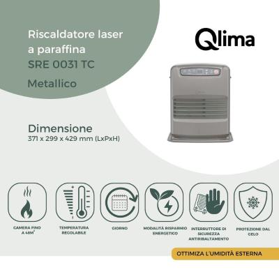 La STUFA A COMBUSTIBILE LIQUIDO Qlima SRE 0031 TC è una stufa elettronica portatile che consente di programmare l'accensione per ottenere la temperatura desiderata all'orario prescelto. In questo modo è possibile trovare un ambiente caldo e confortevole appena rientrati a casa. Necessita solo di una presa elettrica e non c’è bisogno di nessuna installazione; con una potenza massima di 3.1 kW è adatta a scaldare ambienti fino a 120 m3 .