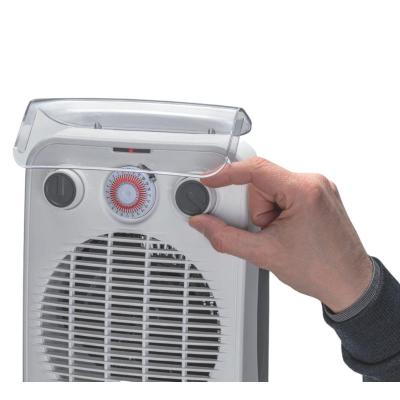 Termoventilatore elettrico 2000W, provvisto di timer 24 ore, termostato ambiente regolabile, termostato di sicurezza antisurriscaldamento, pannello di controllo protetto da sportello, 2 livelli di potenza(1000W/2000W), manopole di selezione comandi e maniglia posteriore. Livello di protezione IP21.Ideale per riscaldare appartamenti, sale da bagno, negozi, uffici, sale d’aspetto e tutti quegli ambienti dove sia necessaria una fonte di calore ed uno stile moderno. Area di copertura 20 m².Il timer 24h permette la programmazione automatica dell’accensione e dello spegnimento. Lo sportellino anti goccia, che protegge l’area comandi, ne permette l’utilizzo negli ambienti umidi in tutta sicurezza.
